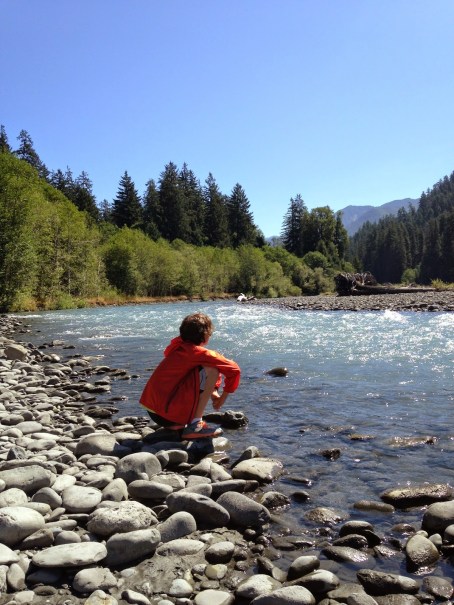 After hiking the Hall of Mosses and the Spruce Nature Trail, we hiked along the Hoh River Trail and spent some time by the river. The Hoh River comes from glacial melt and is full of glacial sediment. It is pristine and the fine gray sediment along the river unique…almost like ash. We had such a peaceful time by the river, so far from people and civilization. It’s one of those moments that defines why I love hiking so much. To see this amazing river, so pure, so magnificent. The quiet broken only by the babbling water and birds singing.