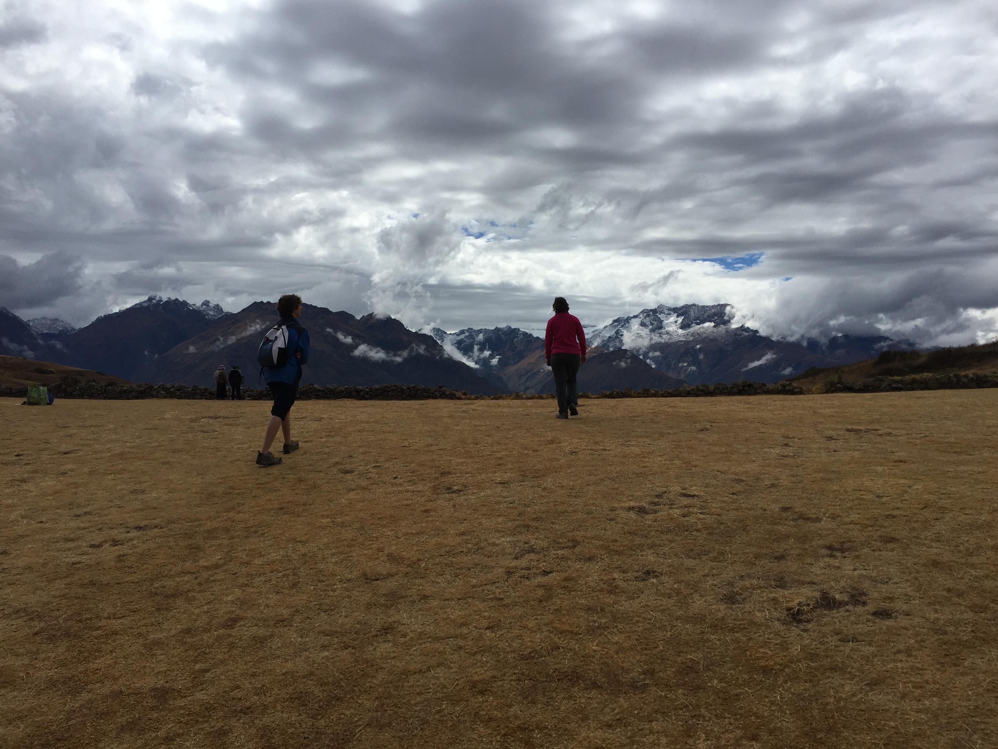 Moroy is made up of terraced circular depressions thought to be an Inca agricultural experiment station. It was interesting, and quite different from the the typical ruins we would see, but really it was the remote drive that I enjoyed most. We then headed back to the village of Maras. There was a small square where some local women were selling a fresh batch of raspberry Chicha. Chicha is the local fermented drink, made primarily from corn but apparently made from other current crops as well! We bought a glass and all shared it (kids too). It is not strongly alcoholic, and so I worried about getting sick from it…but no one did. We gave our driver some too. He got a kick out of us all trying it. We also bought some delicious and crazy cheap pastries from a street vendor.