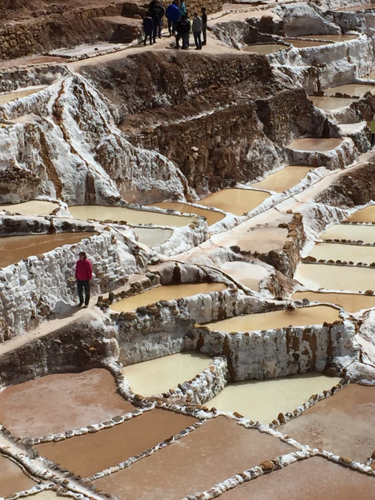 After our snack/chicha break we continued on to the Maras Salt Flats, or Salinas de Maras. This is an amazing site, and a must see for anyone in the region. There are thousands of rectangular salt pools dotting the steep mountainside collecting salt. They evaporate and are harvested. They pre-date the Inca and have been in continual use for well over 1000 years. A fascinating site, and the market at the entrance has great souvenirs.